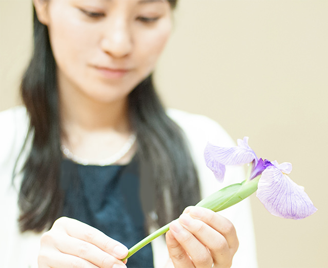 未生流では、お花を形よくいけるだけではなく、お花や花器、鋏などを丁寧に扱うことを徹底的に教えられ、お花をいける環境や立ち振る舞いは勿論のこと、心映えも美しくあることを目指しています。その時々の命を咲かせる花を慈しみ、四季の移ろいを感じつつ花と向き合うときは、現代に生きる私達にとってなにものにも代えがたい貴重な時間です。